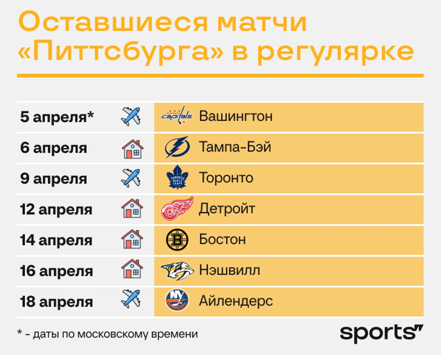 За 7 матчей до финиша регулярки «Пингвины» вполне претендуют на попадание в плей-офф – они бодры, веселы, и все, что им надо для локального успеха – просто обыгрывать команды своей конференции, особенно те, которые толкаются за уайлд-кард. Как сегодня – в игре с «Нью-Джерси».