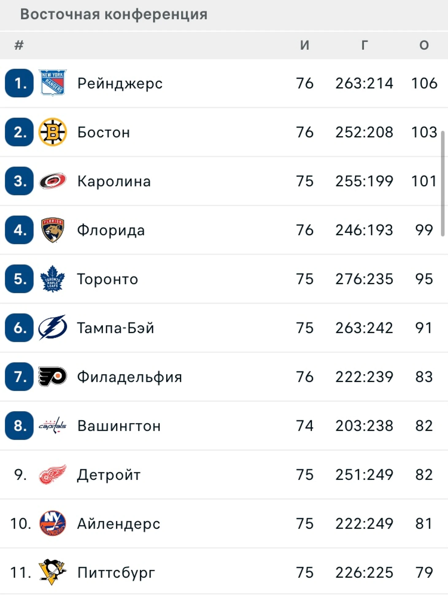 Но, в последнем туре (17 и 18 апреля) мы, при определенных раскладах, можем получить два прямых стыка за выход в розыгрыш Кубка Стэнли: «Пенс» - «Айлендерс» и «Флайерз» - «Кэпиталз». И это будет круто!
