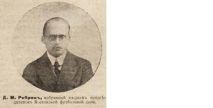 «28/15 февраля [1918 года] в помещении Олимпийского комитета состоялось Общее собрание МФЛ. <...> Д.М. Ребрик сделал доклад о деятельности Комитета Лиги за истекший год. Доклад этот постановлено отпечатать, поместив его в весенний календарь. Кроме того, решено поместить туда же и другие сведения, как-то: кассовый отчет, правила розыгрыша кубков и проч. Этим предполагается положить основание изданию ежегодников* Лиги, что нужно только приветствовать, так как до сего времена Лига никаких печатных сведений о себе не издавала. <...> В.И. Чесноков произнес небольшую речь, в которой ярко охарактеризовал деятельность Д.М. Ребрика не только как председателя Футбольной лиги, но и как разностороннего спортивного деятеля, с любовью отдающего свой труд и знания любимому делу. Собрание приветствовало своего председателя и по предложению Н.А. Гюбиева, единодушно постановило просит Д.М. Ребрика принять на себя обязанности председателя без всякой баллотировки и на настоящий год, на что Д.М. ответил речью с выражением благодарности собранию за свое избрание» (журнал «Русский спорт» № 3-4 от 24 (11) марта 1918 года).
