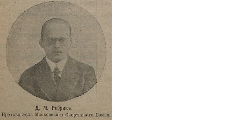 «29 апреля [1918 года] состоялось общее co6paниe Московской лиги любителей легкой атлетики, на котором был избран новый состав Комитета Лиги. Председателем вновь избран Д.М. Ребрик» (журнал «Русский спорт» № 9 от 19 (6) мая 1918 года).
