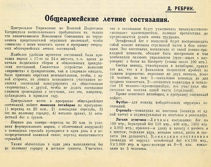 Фрагмент статьи Д.М. Ребрика опубликованной в журнале «Красный спорт» № 7 за апрель 1924 года