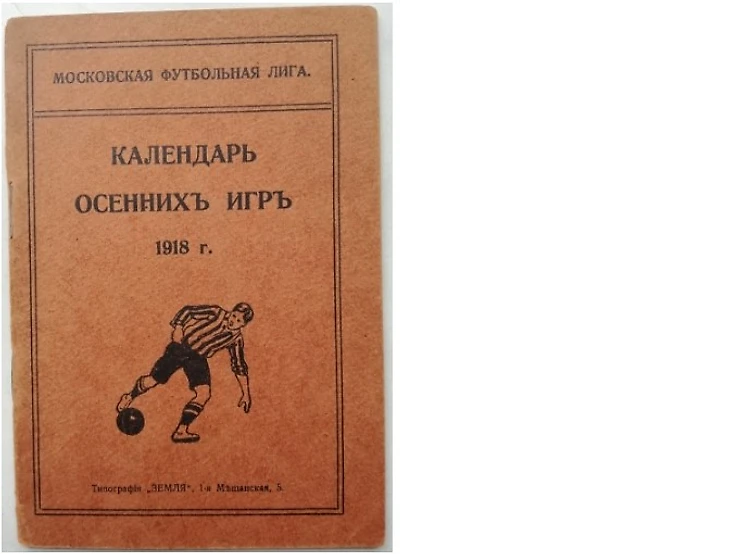1918 год. «Календарь осенних игр 1918 года» Московской футбольной лиги, напечатанный в типографии «Земля». Возможно, председатель МФЛ Д.М. Ребрик имел к ней какое-то отношение
