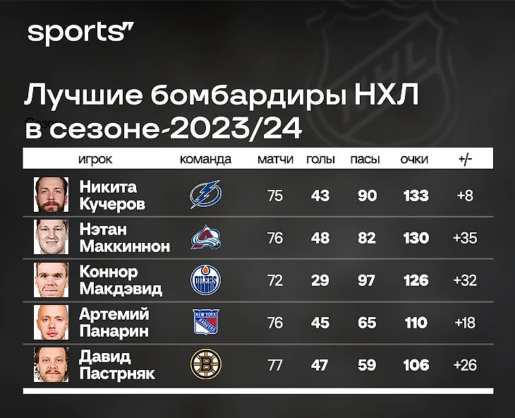 Расклады на бомбардирскую гонку: Кучеров впереди, а Маккиннон и Макдэвид дважды играют друг с другом