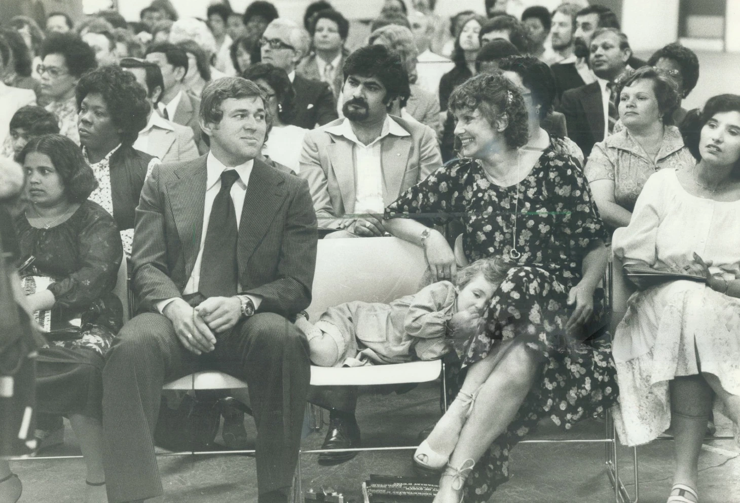 27 июня 1979 года. Торонто. Вацлав, двухлетняя Виктория и Вера Недоманские на заседании в зале суда по итогам, которого они станут гражданами Канады (фото Graham Bezant)