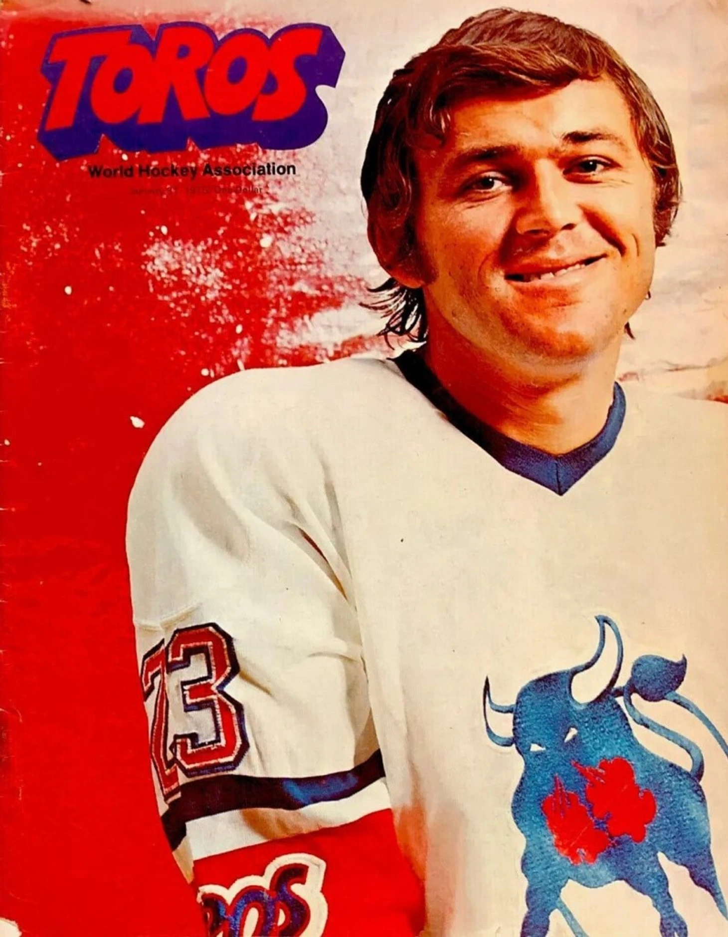 Вацлав Недомански на обложке буклета, выпущенного к матчу «Торонто Торос» - «Ванкувер Блэйзерс» (6:0), состоявшемуся 31 января 1975 года в «Мэйпл Лиф Гарденс»