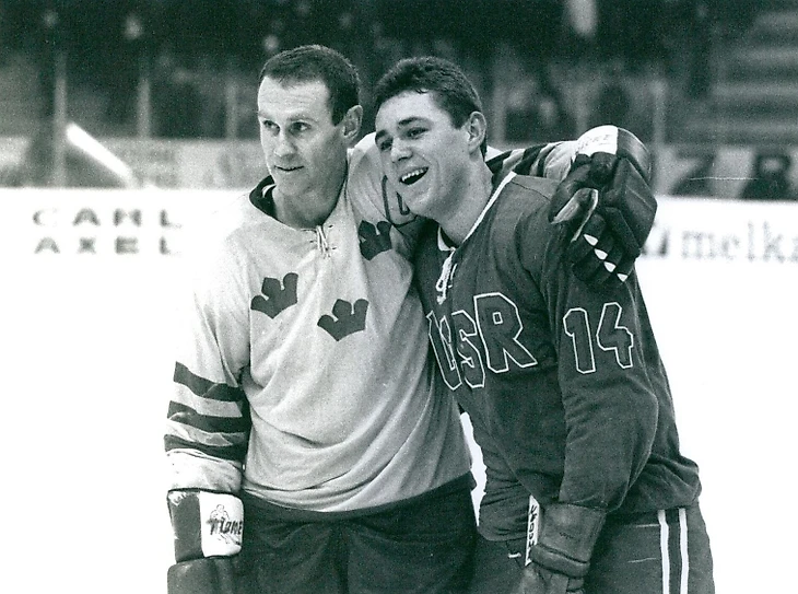 14 марта 1965 года. Тампере. «Яхалли». Чемпионат мира и Европы. ЧССР - Швеция - 3:2. Вацлав Недомански и его кумир - капитан сборной Швеции Свен Тумба-Юханссон