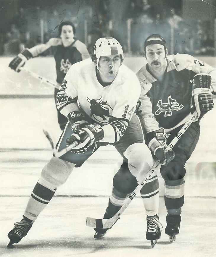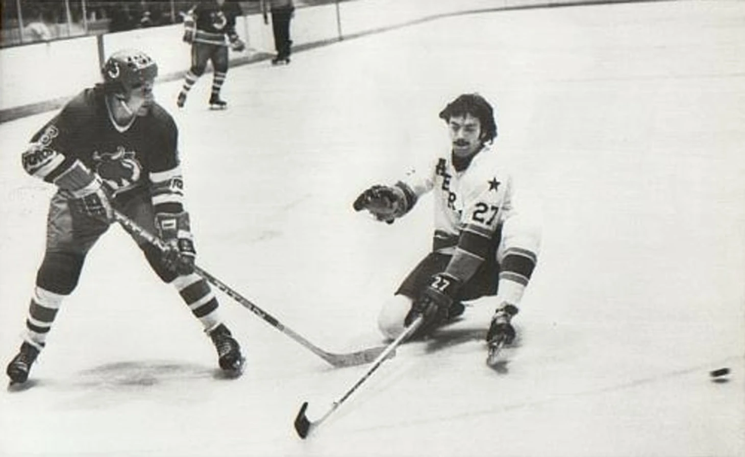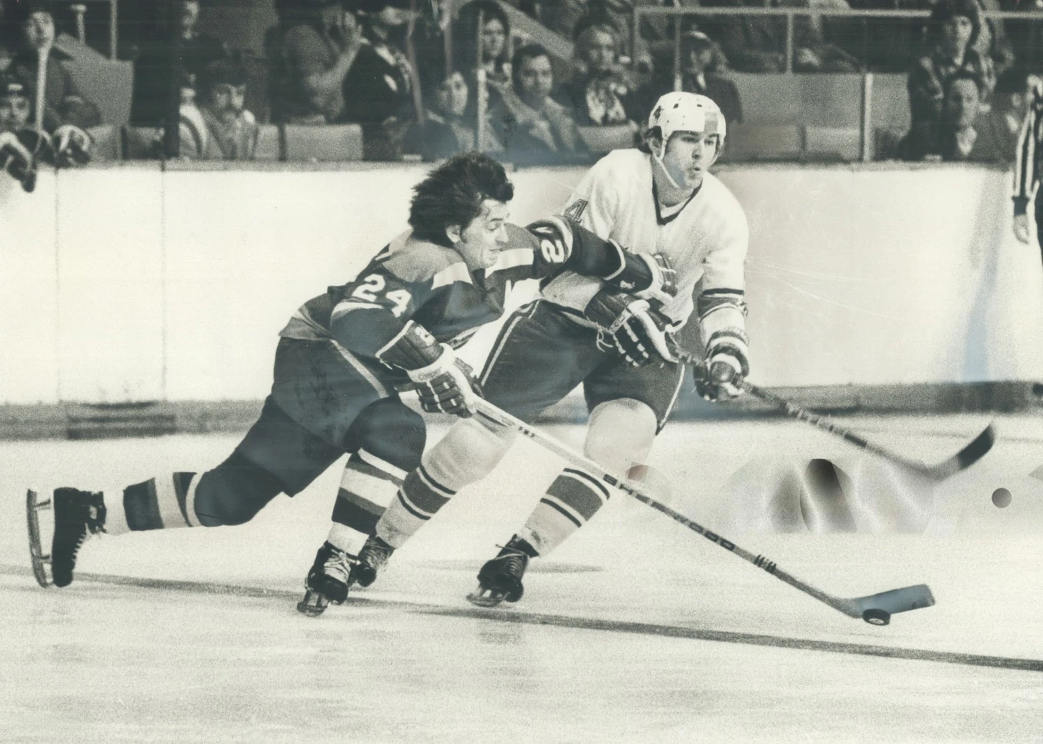 Сезон 1974/75 годов. «Торонто Торос» - «Квебек Нордикс». В атаке Рихард Фарда и Вацлав Недомански (reprehokej.cz)