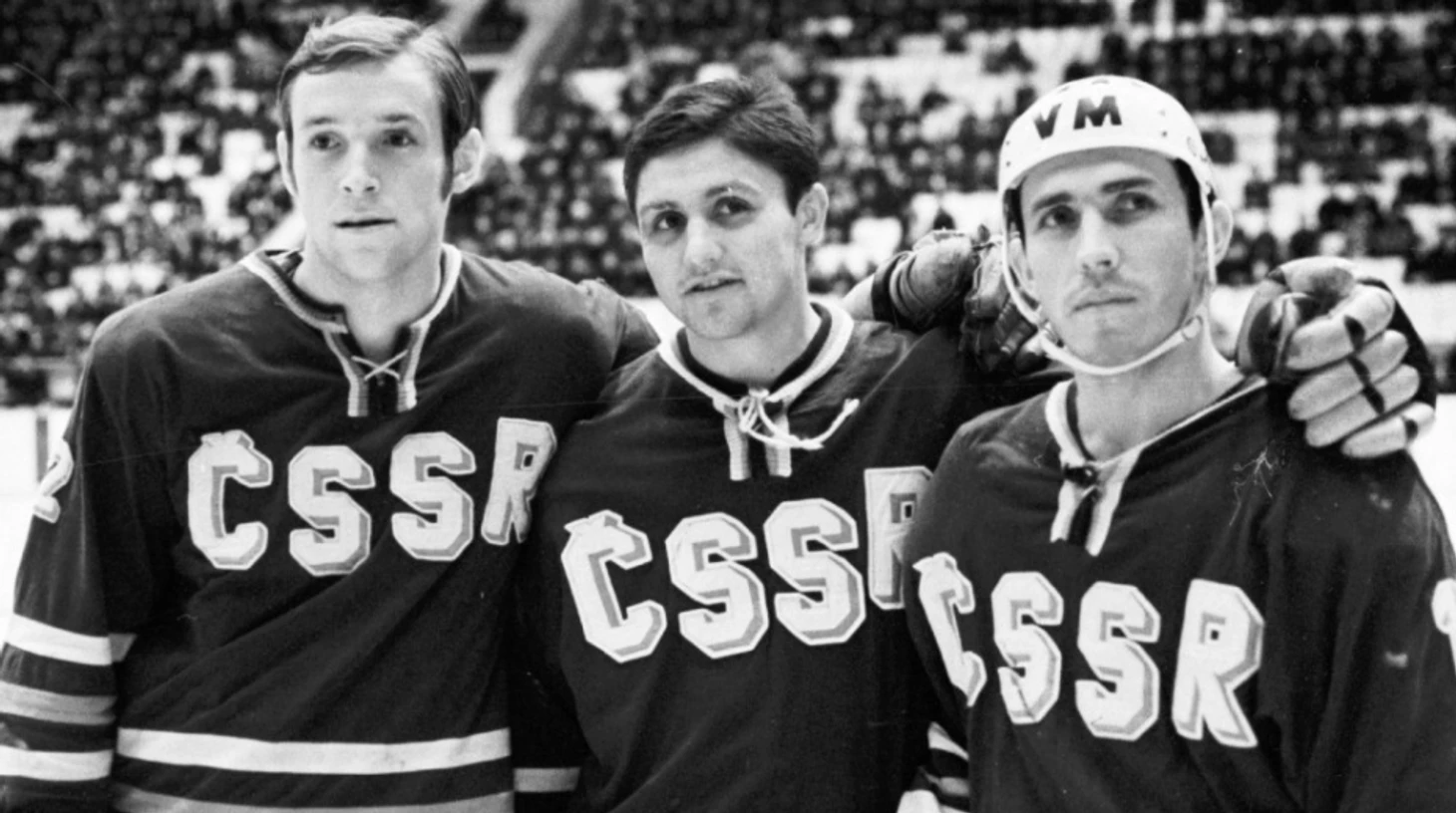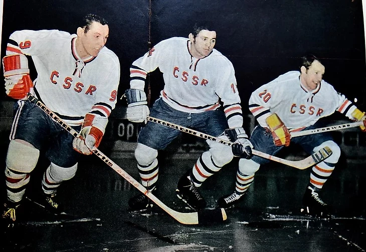 Сезон 1968-69 годов. Одно из звеньев нападения сборной ЧССР: Вацлав Недомански (№ 14), Ярослав Холик (№ 5) и Иржи Холик (№ 20)