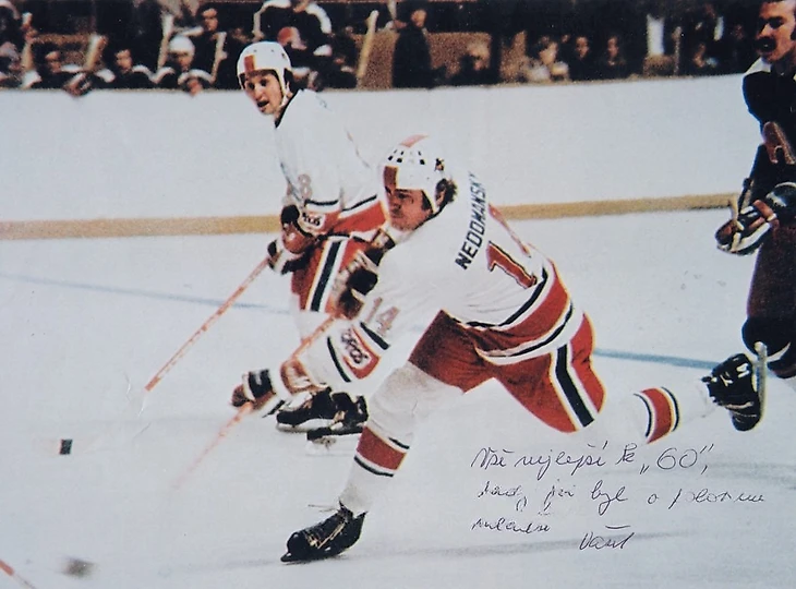 Начало 1970-х годов. Вацлав Недомански в свитере сборной ЧССР с № 17, в котором однажды были сфотографированы и другие чехословацкие сборники: Владимир Дзурилла, Иван Глинка, Ярослав Холик, Олдржих Махач, Ярослав Иржик, Йозеф Аугуста