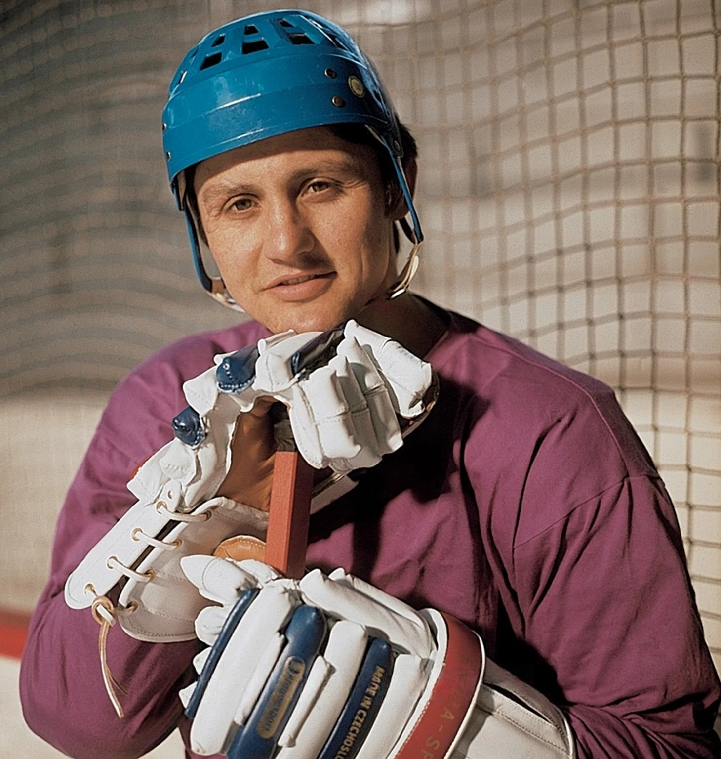 Рубеж 1960-70-х годов. Рихард Фарда в перчатках с надписью «Made in Czechoslovakia», сделанных на предприятии «Опус» (reprehokej.cz)
