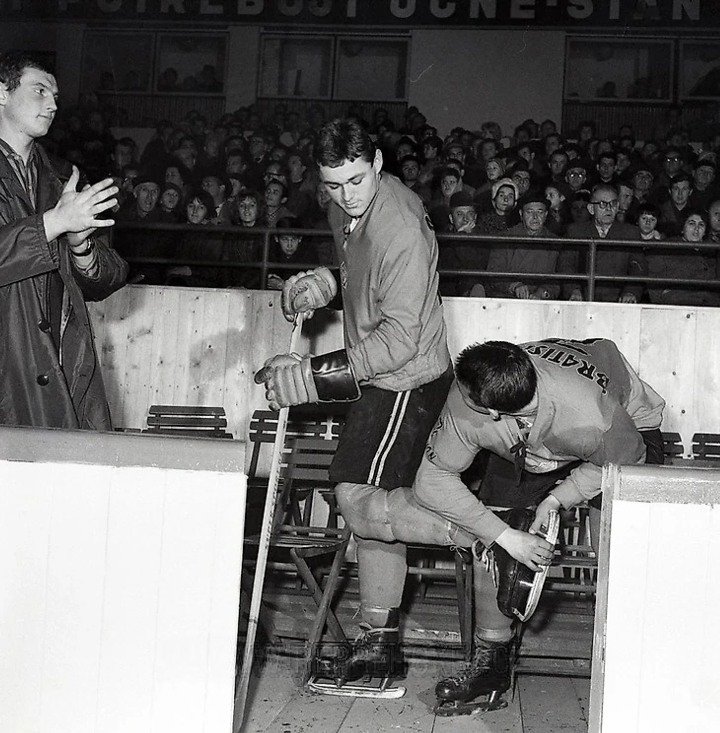 Март 1966 года. Любляна. «Тиволи Холл». Чемпионат мира и Европы. Вацлав Недомански на тренировке сборной ЧССР (reprehokej.cz)