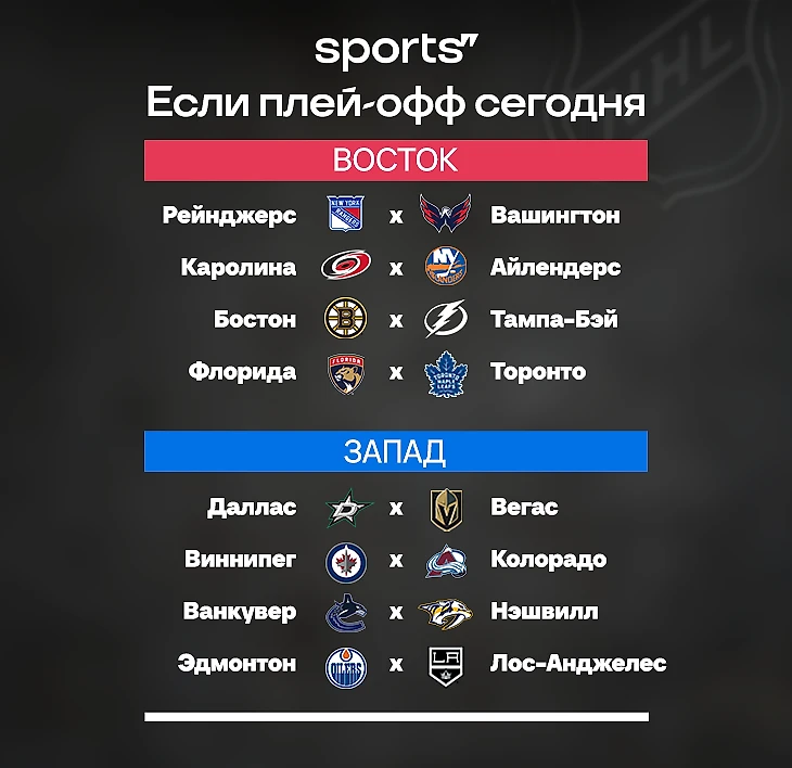 Но последнее место в розыгрыше Кубка Стэнли – не последняя интрига регулярки. Есть еще одна – возможно, ключевая для сетки плей-офф: окончательные пары первого раунда. На данную минуту они выглядят так: