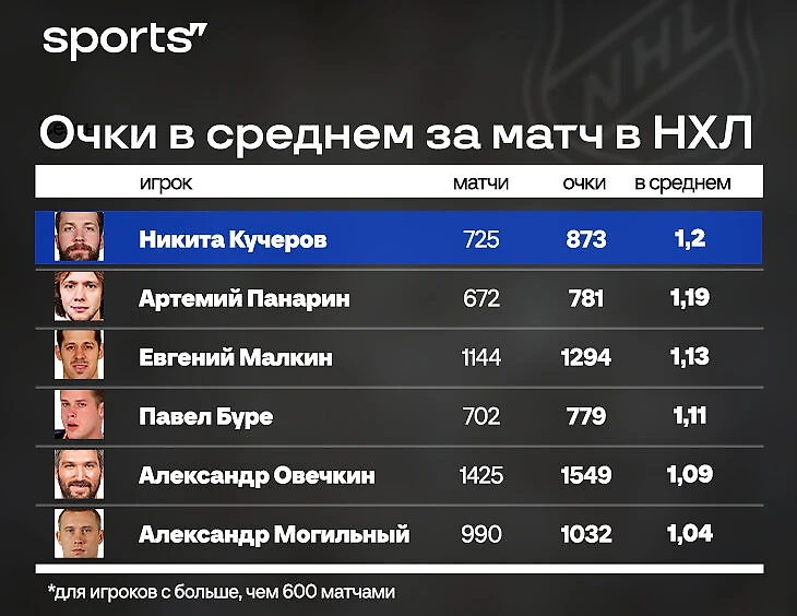 В нем Кучеров восьмой сейчас и, очевидно, когда-то будет в топ-4. Но погоня за Ови и Малкиным – это вопрос здоровья, а у Никиты уже есть целиком пропущенная регулярка-2021. И в целом эта таблица оценивает не пик, а дистанцию: дольше играешь – выше забираешься.
