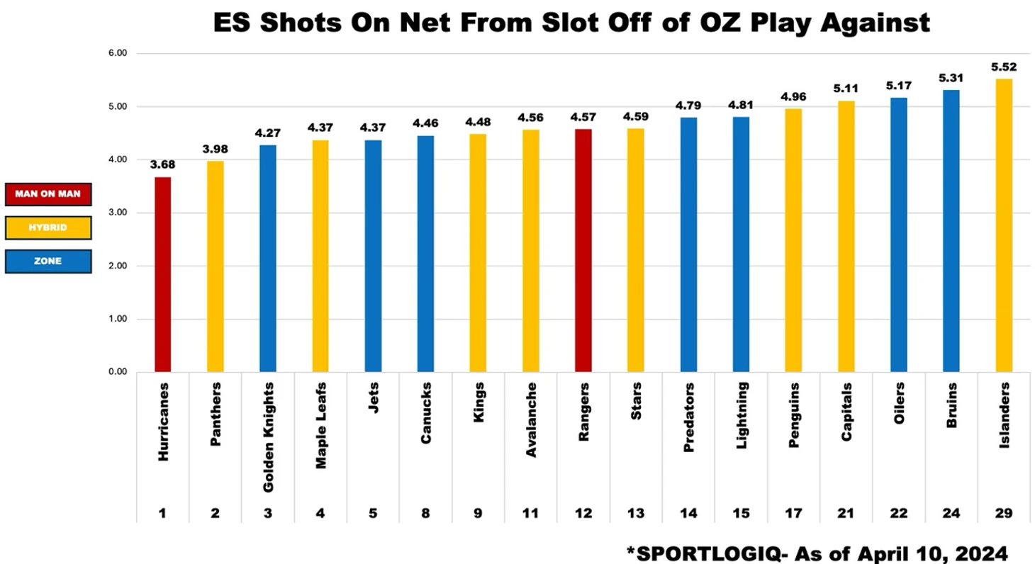 Зависит ли стиль от игроков которые есть в ростере? Определённо да. Чтобы играть в гибридную или индивидуальную защиту, вам нужны защитники с хорошим катанием и с хорошими способностями при игре один в один. В зонной системе защитники не могут подняться выше определённых точек, и их зона ответственности обычно располагается вдоль бортов, а не на открытом льду. «Каролина» может играть один в один, потому что у них есть защитники с элитным катанием, «Флорида» может играть гибридно, потому что у них есть мобильные игроки на задней линии. А «Тампа-Бэй» в этом сезоне вернулась к зональной системе имея тех защитников которыми они располагали в своём ростере, Купер здесь подстроился под состав.