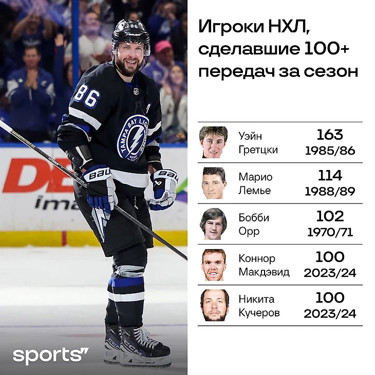 Уточнение про «лучшие» – не случайно, потому что Уэйн 11 раз за карьеру выбивал 100 передач. Что, кстати, не мешает Великому восхищаться Кучеровым – отправил главному тренеру «Тампы» сообщение по ходу матча.