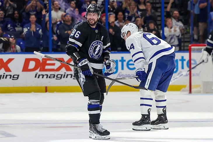 И теперь Никита среди них. Вообще по игре показалось, что только ради этого момента хоккеисты «Тампы» и выходили на лед – никакого другого значения у матча с «Торонто» просто не было. Так, размяться перед плей-офф да Никиту поздравить.