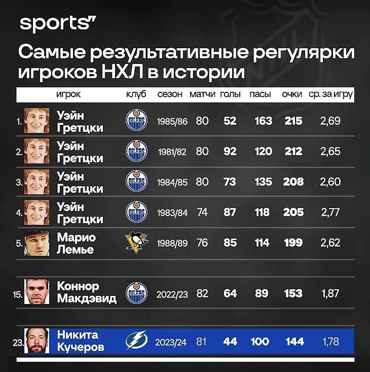 Но, конечно, даже с таким мощным сезоном Кучерову до легенды не дотянуться.