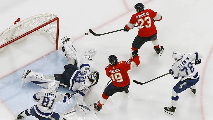 «Флорида Пантерз»-»Тампа-Бэй Лайтнинг» 3:2 (ОТ). Картер Верхаг в овертайме принёс победу хозяевам. Картер Верхаг и Сэм Беннетт набрали по 2 очка (1+1), Владимир Тарасенко забросил одну шайбу, Сергей Бобровский отразил 21 бросок. У гостей Виктор Хедман отдал 2 результативные передачи, Никита Кучеров отдал результативную передачу. «Пантеры» ведут в серии 2-0.