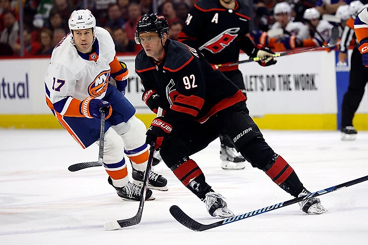 Второй матч «Каролины» с «Айлендерс» стал историей преодоления: получив 0:3 и проигрывая 2:3 за 2,5 минуты до конца, «Харрикейнс» не просто спаслись, а победили.