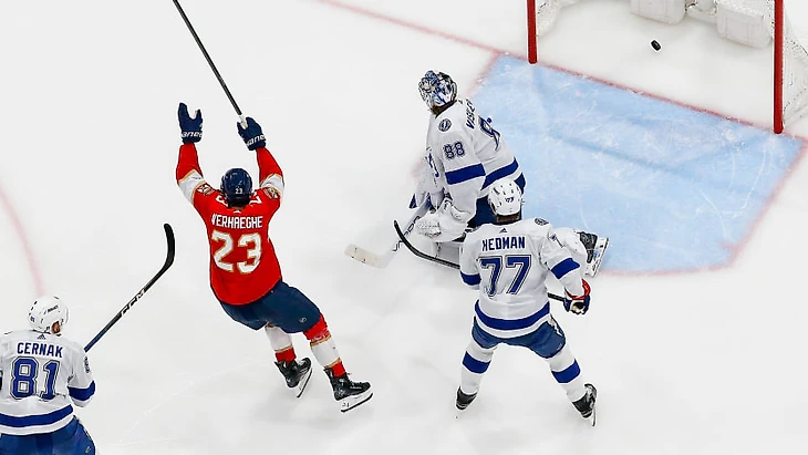 «Флорида Пантерз»-»Тампа-Бэй Лайтнинг» 6:1. Хозяева в 3 периоде забросили 4 шайбы. Александр Барков и Картер Верхаг набрали по 3 очка (2+1), Нико Миккола набрал 2 очка (1+1), Мэттью Ткачук отдал 2 результативные передачи, Владимир Тарасенко отдал результативную передачу, Сергей Бобровский отразил 31 бросок. У гостей Никита Кучеров отдал результативную передачу. «Пантеры» выиграли серию 4-1.