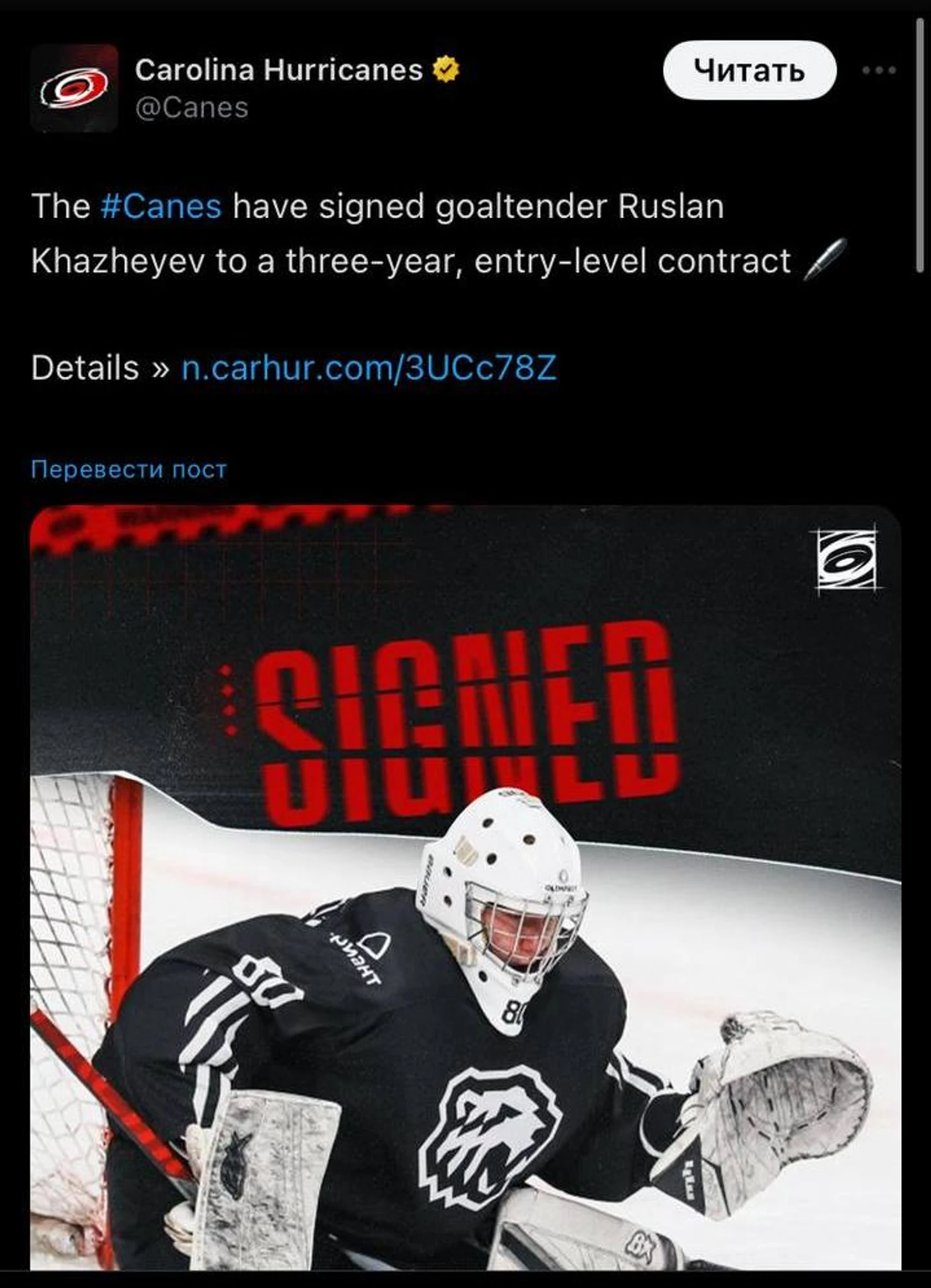 Руслан Хажеев дождался дебюта в ВХЛ за «Челмет», а вот шанса в «Тракторе» решил не дожидаться. Переезжает в систему «Каролины».