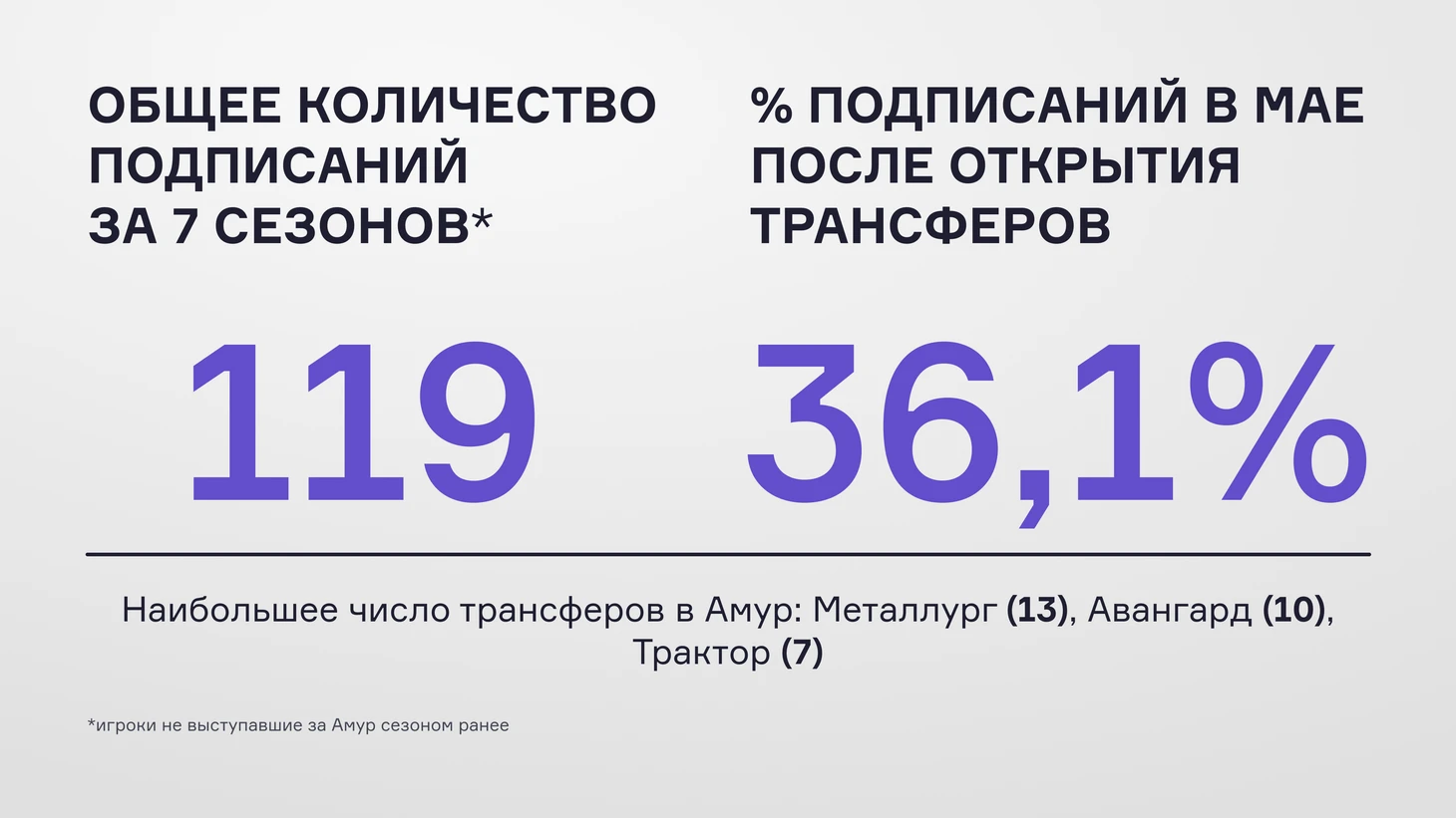 Среди всего выделяется сезон 20/21, но тогда была ситуация полностью повторяющая минувший сезон. Многие игроки продолжили играть в Хабаровске (братья Ушенины, братья Зогорна, Аликин, Йордан, Рассказов, Корягин), потому что на свой третий сезон в Амуре (!) остался главный тренер Александр Гулявцев. Однако в межсезонье он неожиданно для многих покинул команду, а у всех игроков уже были действующие контракты. Мне кажется, что если бы Гулявцев покинул команду раньше, то процент оставшихся игроков был на уровне 40-50%.