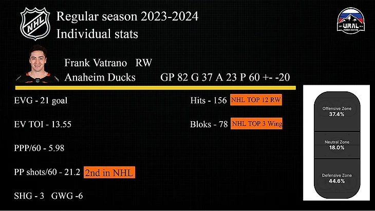 У него получился лучший сезон в карьере. 37 заброшенных шайб и 60 очков, стали рекордными. Наконец-то получил больше доверия, много выходил в неравных составах.( 13 голов в большинстве , 3 в меньшинстве). Но пока что, это мало влияет на результат команды. Анахайм не попадает в пост-сезон уже 6 раз подряд.