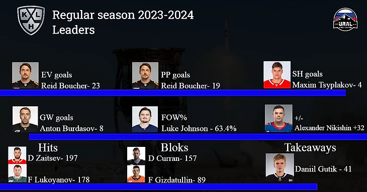К сожалению, КХЛ не дает полной развернутой статистики, как НХЛ, но будем довольствоваться ,тем что есть.