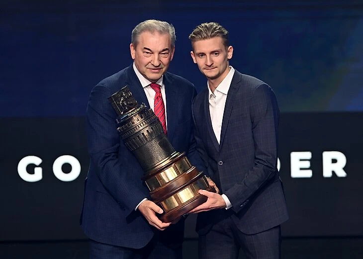 ● Приз «Золотая клюшка», вручаемый самому ценному игроку регулярки, достался Никите Гусеву («Динамо»). Номинантами на награду вместе с ним были Рид Буше и Владимир Ткачев (оба – «Авангард»). Ожидаемо приз взял Гусев – лучший бомбардир регулярки, который к тому же сыграл во всех 68 матчах и установил рекорд по очкам.
