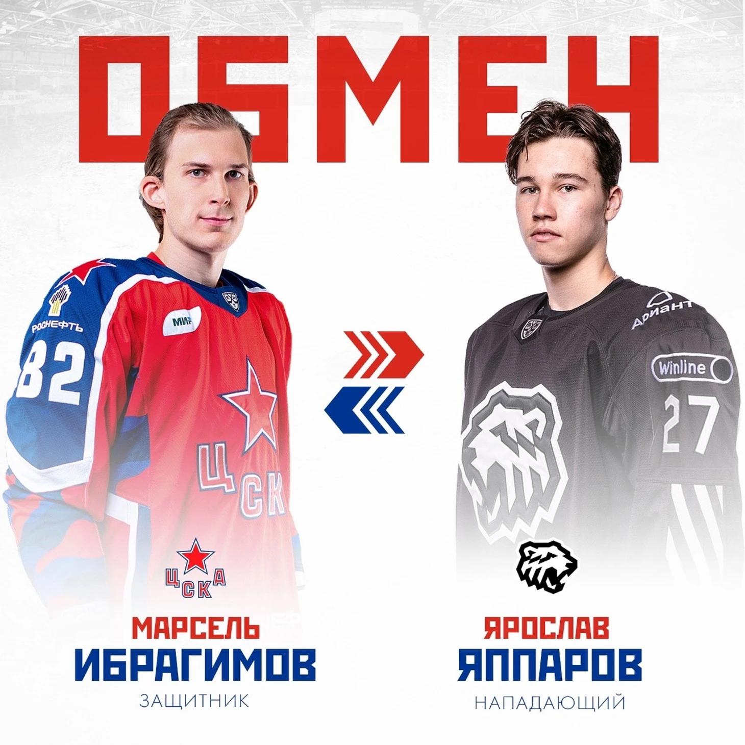 В результате обмена защитник Марсель Ибрагимов перешёл в челябинский «Трактор». Взамен ЦСКА получил нападающего Ярослава Яппарова. 26-летний Ибрагимов выступал в системе ЦСКА с сезона 2017/18. Он провёл 257 матчей и набрал 66 (5+61) очков в составе «Звезды», вместе с которой выиграл Кубок Шёлкового пути и золотые медали ВХЛ в 2020 году. В составе основной команды ЦСКА он набрал 10 (1+9) очков в 74 матчах. Яппарову 20 лет, он является воспитанником ангарского хоккея. В сезоне 2022/23 он провел два дебютных матча в КХЛ в составе «Трактора». В минувшем сезоне на его счету 45 матчей и 31 (19+12) очко в составе «Белых Медведей», вместе с которыми хоккеист стал бронзовым призером МХЛ, и 25 игр за «Челмет» в ВХЛ. Спасибо Марселю за долгие годы в армейском клубе и удачи в дальнейшей карьере!