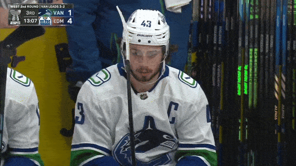 Эмоции всего «Ванкувера» в этом матче отражает лицо капитана команды Куинна Хьюза:
