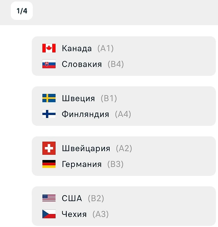 Определились все пары 1/4 финала чемпионата мира по хоккею. Кто выйдет в полуфинал?