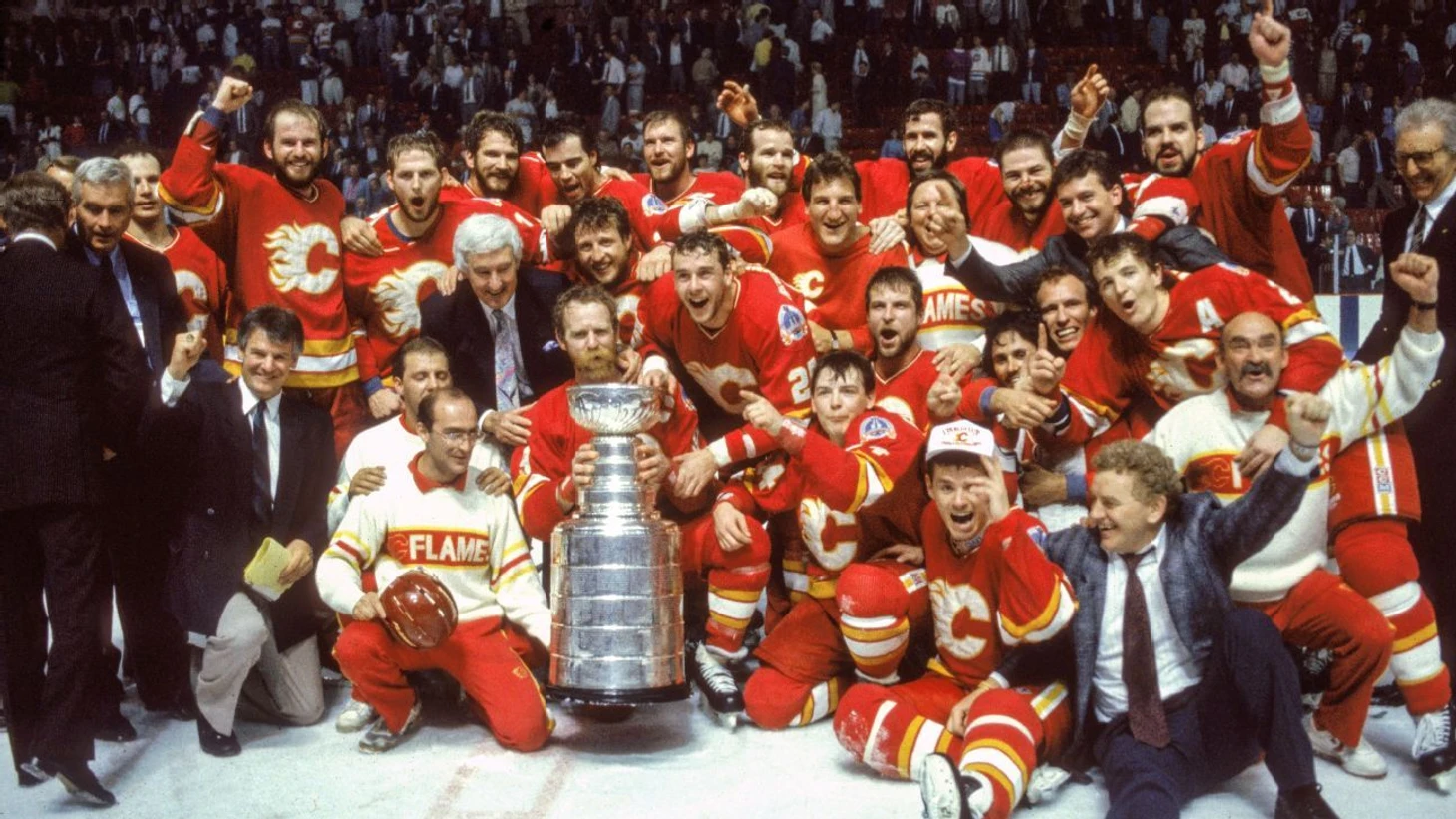 Список выскочек-обладателей чашки открывает «Калгари Флеймз». Среди канадских клубов НХЛ они до сих пор остаются единственными выскочками прошлого столетия. Кроме того, они стали таковыми еще в период существования самого СССР. Мало кто знал, что через 2 года после успеха «пламенных» Советский Союз прекратит свое существования как субъект международного права. В финальной серии «огням» противостояли рекордсмены по числу побед из Монреаля. Противостояние растянулось на 6 матчей, а решающая встреча завершилась со счетом 4:2, как и итог всего финала.