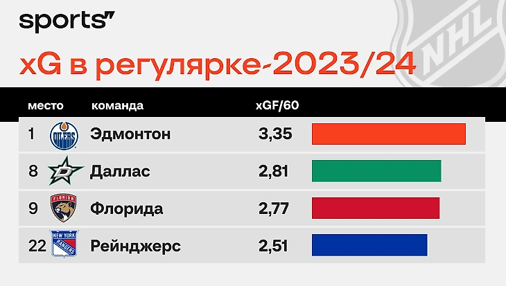 Часть проблем «Флориды» объясняется тем, что в этом плей-офф она еще не играла с соперником, который так хорош при 5-на-5 – а «Эдмонтон» лучшая команда регулярки по ожидаемым голам 5-на-5.