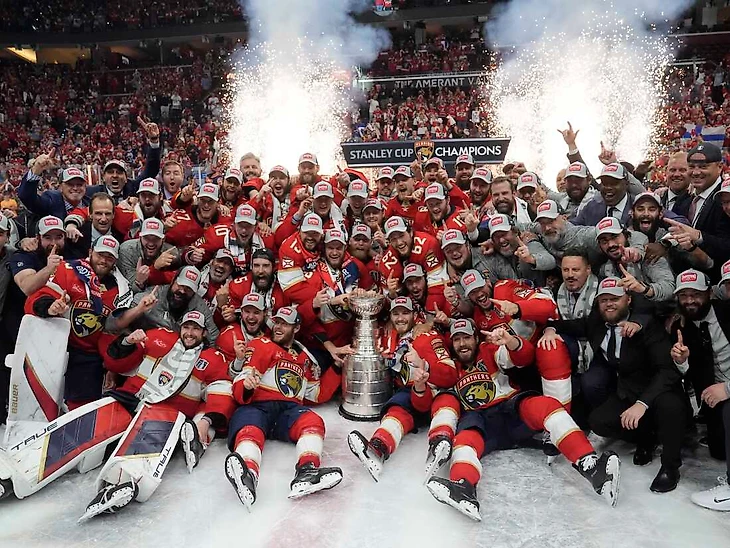 «Флорида Пантерз» - новый обладатель Кубка Стэнли! Заокеанская клубная чемпионская элита пополнилась 22-ым своим членом и 8-ым победителем, сделавшим это в 1-ый и пока что единственный раз. Причем как и 5 лет назад с интервалом в 1 сезон повторилась история, когда команда впервые взяла главную заокеанскую чашку. Во многом этому поспособствовал также фактор високосного года. Судите сами: 2018-ый – чемпион «Вашингтон», 2019-ый – чемпион «Сент-Луис». 2023-ий – чемпион «Вегас», и вот, наконец настал черед «котов». Кроме того, это 3-ий случай в истории турнира в XXI в., когда в течение 2-х сезонов подряд чемпионами НХЛ становились команды, ранее никогда не побеждавших в ней. Пионером были «ураганы» из Каролины (2006), 2-ыми – анахаймские «утки» (2007).