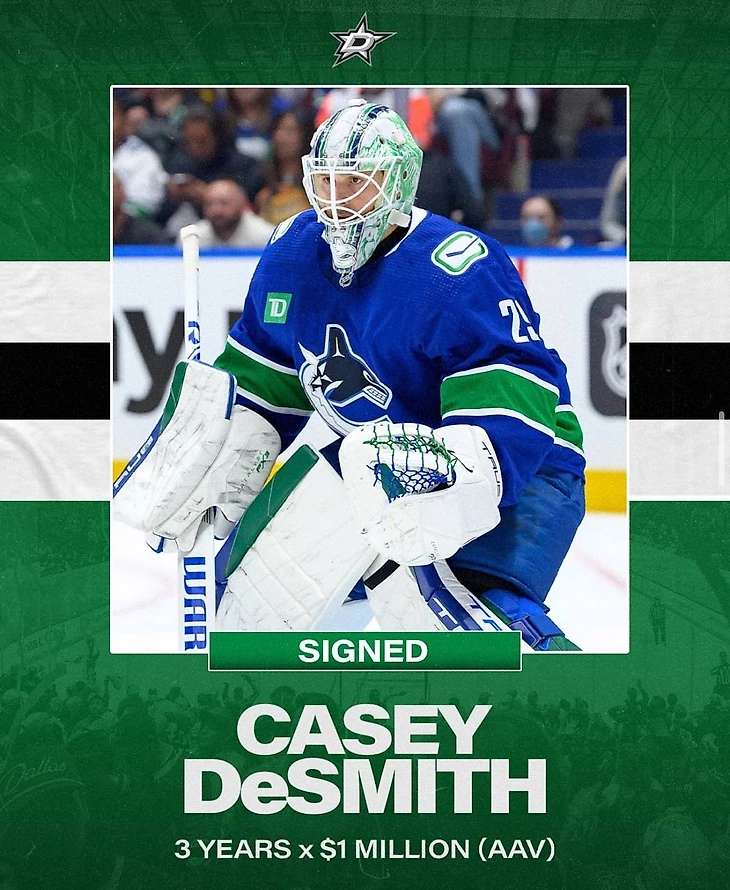 Если честно, поначалу контракт ДеСмита был в моем рейтинге выше, но я не осознавал, что Кейси уже 32 года. Возраст в условиях трехлетнего срока соглашения немного опустил это подписание в рейтинге, но не отменил того факта, что «Даллас» за бесценок на несколько сезонов получил под Оттинджера неплохого бэкапа, способного взять 20-30 игр в сезоне. Конечно, он был у команды и в прошлом сезоне в лице Скотта Уэджвуда, но, судя по всему, лишние полмиллиона, которые последнему выписали в «Нэшвилле», стали ключевым фактором в решении сменить второго вратаря. К слову, переход Скотта в стан «хищников» мог бы оказаться в десятке, но он напрочь закрывает дорогу в НХЛ Ярославу Аскарову, который как-никак является топ-проспектом франшизы.