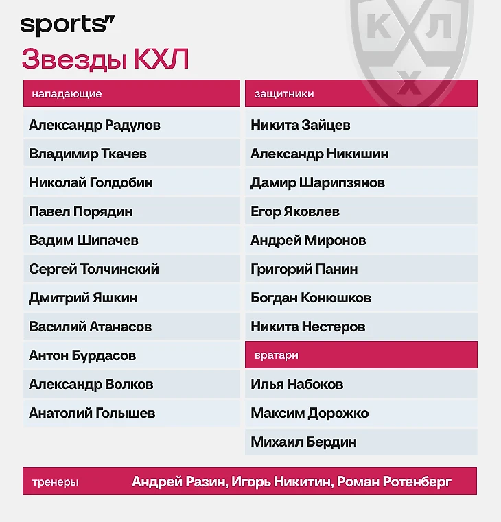 В составах есть неожиданные фамилии. Например, голкипера Максима Дорожко сложно назвать звездой даже на уровне КХЛ. Он провел всего два неплохих сезона в «Витязе» (средний процент отраженных бросков – 92,7%). Вот только в сезоне-2023/24 его клуб даже не попал в плей-офф. Такая же история сложилась и у перешедшего из «Сочи» в «Авангард» Михаила Бердина.