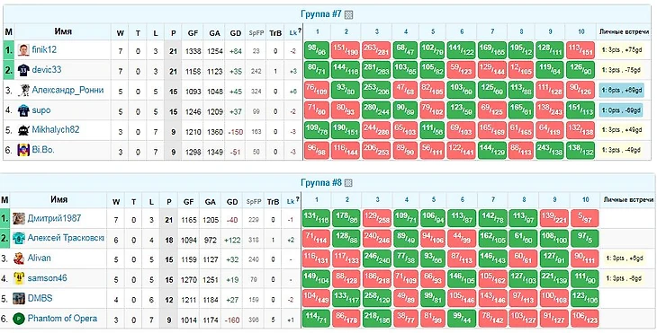 Теперь переходим к чемпионату мира, который собрал наибольшее количество участников - 48 игроков, которые были разбиты на 8 групп по 6 игроков в каждой (по аналогии с командным турниром)
