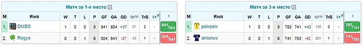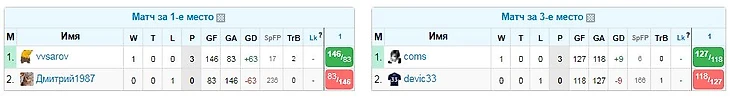 Мои поздравления победителям и призерам хоккейных турниров. По организации хоккейных турниров - это был мой первый опыт, так что не ругайте слишком сильно. Мне понравилось играть в этих турнирах. Так что, если ничего не случится, то продолжению быть. Всем удачи в новом сезоне. Всем спасибо за игру и за эмоции