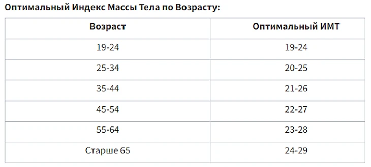 Возрастные процессы в организме тоже никто не отменял, поэтому чем старше становится человек, тем выше для него поднимается планка нормального ИМТ.