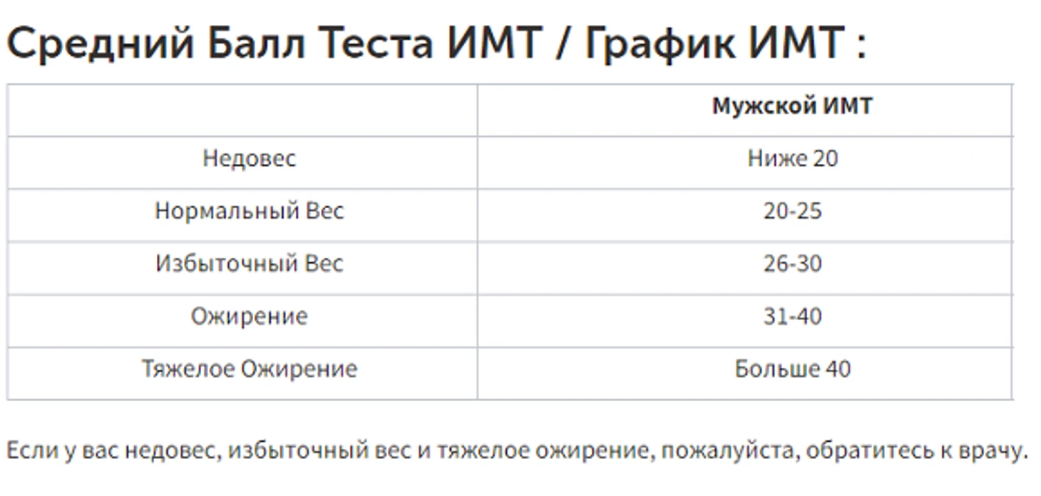 В завершение оставляю ссылку на калькулятор, если вы захотите перепроверить данные или посмотреть свой ИМТ: calculator-imt.com