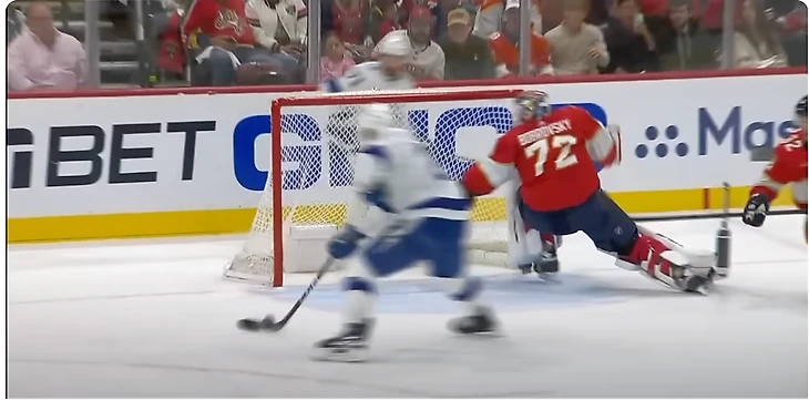 а сейв Боба с Тампой очень хорош, потому что он не бросил играть в моменте, который можно назвать безнадежным и сделал наиболее оптимальное в той ситуации движение, которое оказалось еще и эффективным, как раз такие вещи и отличают вратарей хорошего уровня