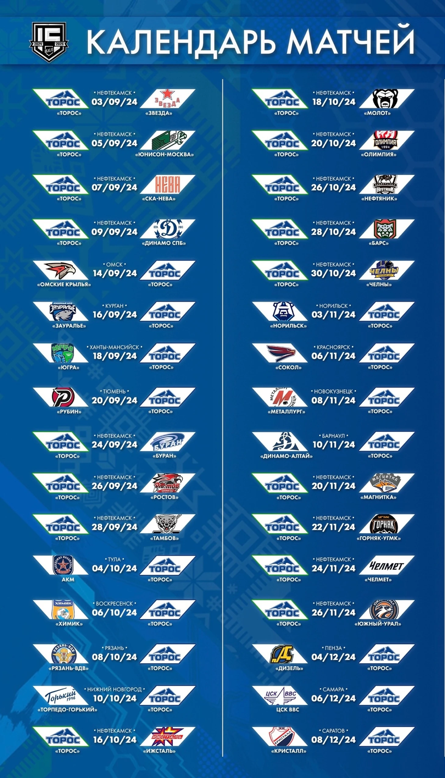Нефтекамский клуб начнёт сезон на домашнем льду 3 сентября против московской «Звезды». Первые четыре игры чемпионата «Торос» проведёт дома.
