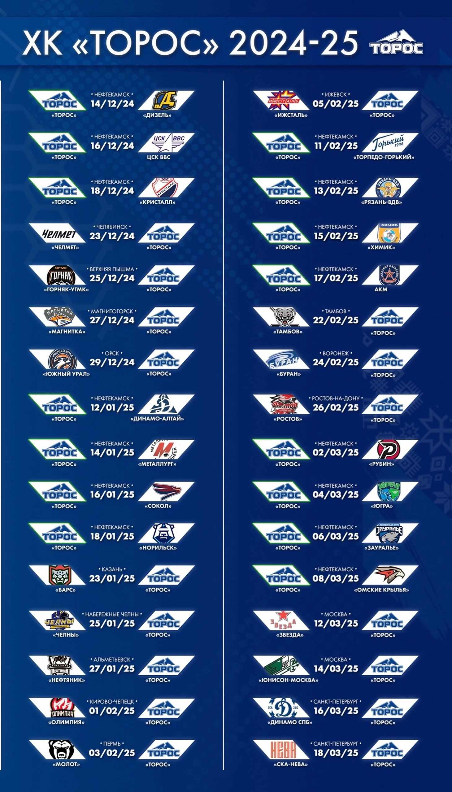 В целом, у команды Анатолия Степанова сбалансированный календарь: домашние и гостевые серии длятся три или четыре матча. Но есть исключение. Во второй половине октября у «Тороса» будет длинная шестиматчевая домашняя серия с географическими соседями: приедут «Ижсталь», «Молот», «Олимпия, «Нефтяник», «Барс» и «Челны». В конце января и начале февраля хоккеисты «Тороса» поедут в гости как раз к этим шести командам. Автобусный выезд.