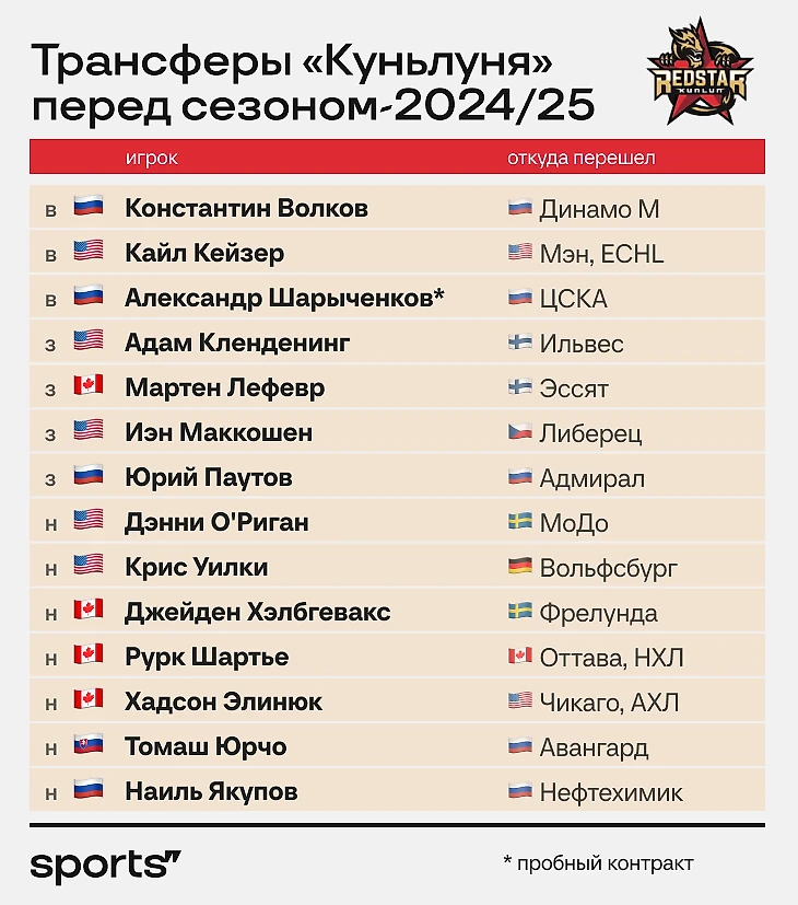 Руководство «Куньлуня» работает над усилением команды именно для участия в КХЛ. Если до этого в клубе чаще появлялись игроки, подходящие под формат сборной, теперь «Ред Стар» расширили политику приобретений.