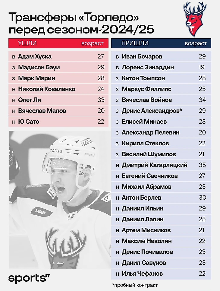 Это еще раз подтверждает, что приобретение возрастных игроков – способ Ларионова и руководство «Торпедо» вписаться в поставленные цели на следующий сезон. Команде очевидно не хватало разнообразия в плей-офф. Теперь же «Торпедо» может побороться за выход в более поздние раунды.