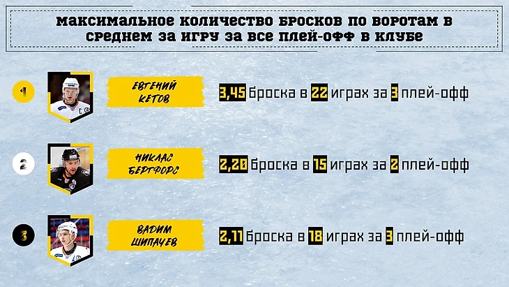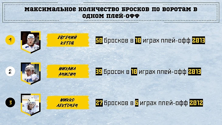 По броскам за плей-офф нет равных Кетову – он обогнал даже Рязанцева. Отрывы от второго и третьего места – колоссальные.