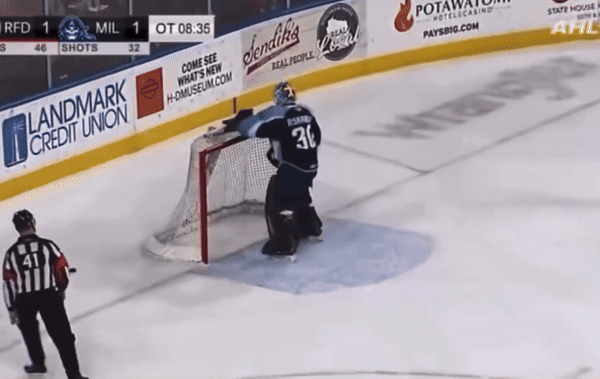 Запомнился Ярослав, кстати, не только спасениями, но и поведением вне игры. Например, вот так он праздновал победу по буллитам над «Рокфордом».