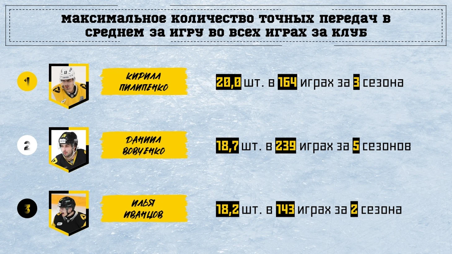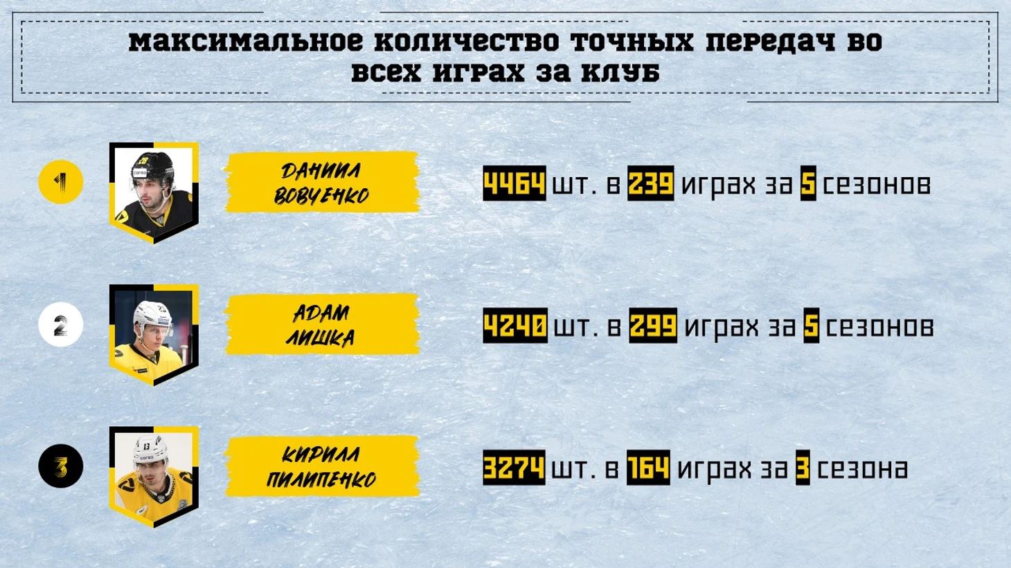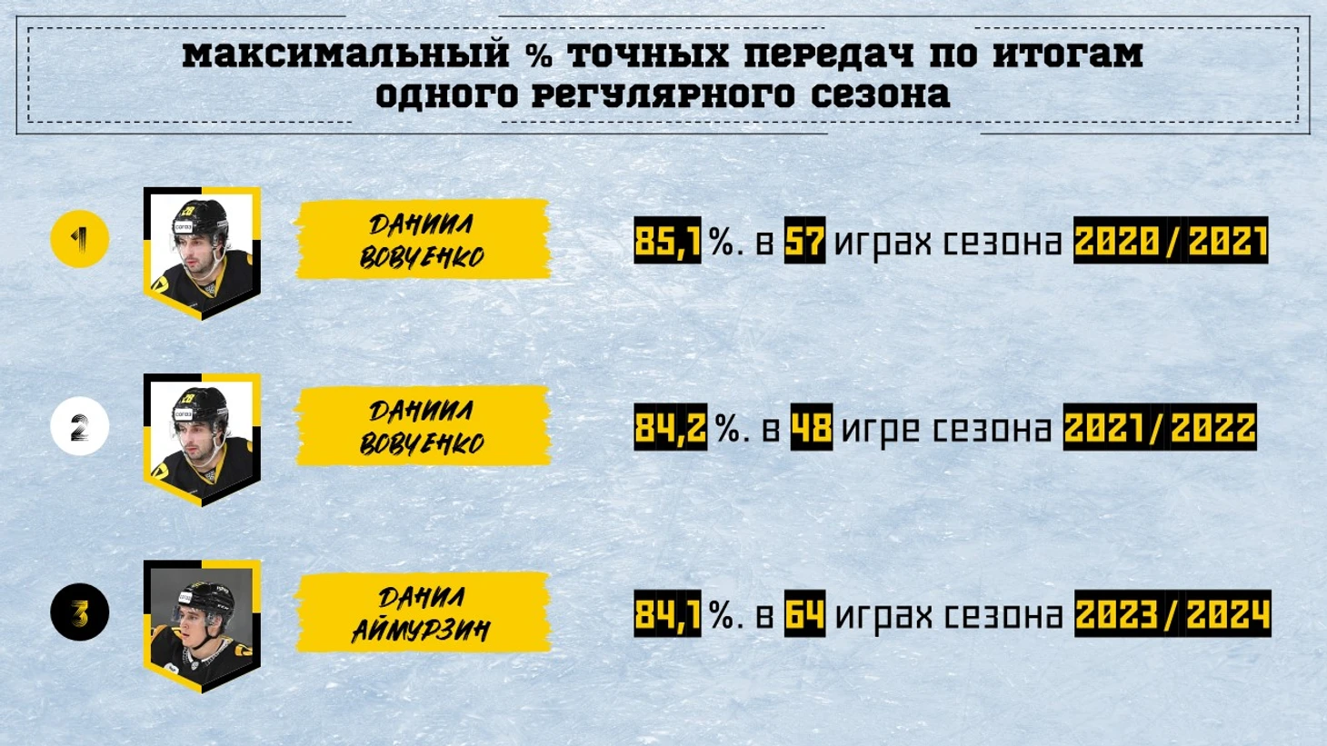 По сумме всех регулярных сезонов лидерство Вовченко в точности передач только усилилось. На третьем месте неожиданно появился Иванцов.