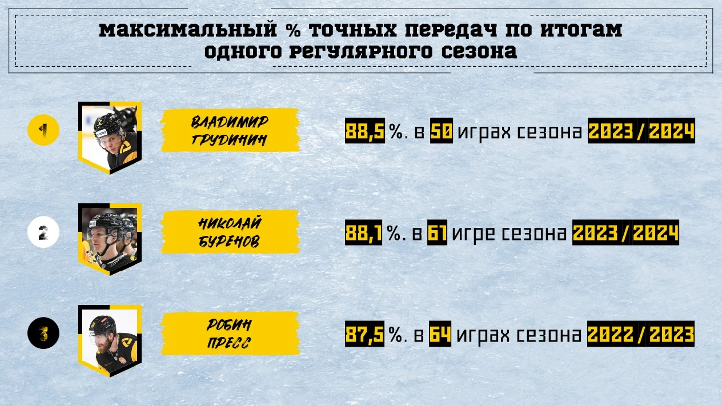 По точности передач в одной регулярке наконец-то что-то новое – лидером стал Владимир Грудинин, а Пресс оказался всего лишь третьим.